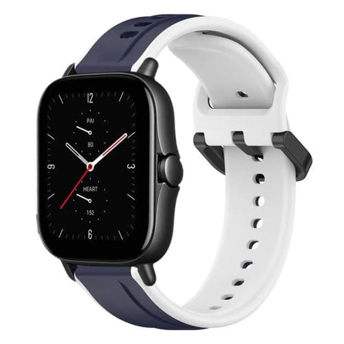 Correa de Silicona para Amazfit GTS 2E 20mm Bucle Convexo (Azul Medianoche + Blanco)