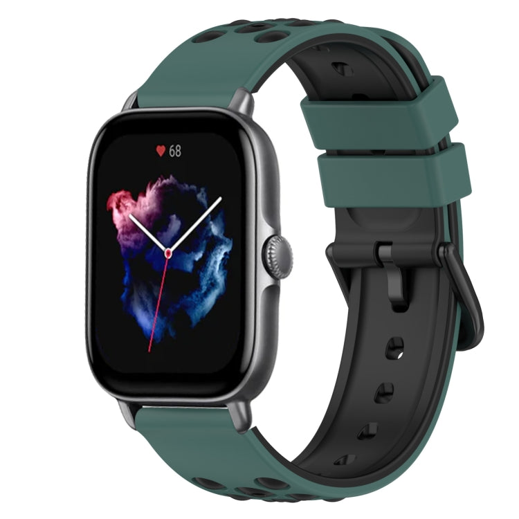 Correa de Reloj para Amazfit GTS 3 20mm Silicona Dos Colores (Verde Oliva + Negro)