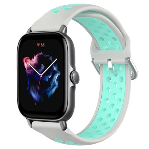 Correa de Silicona Deportiva para Amazfit GTS 3 20mm Transpirable Perforada (Gris + Pato de Agua)