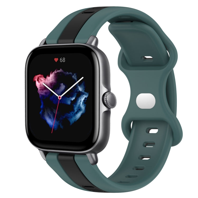 Correa de Reloj para Amazfit GTS 3 20mm con Hebilla de Mariposa de Silicona bicolor (Verde + Negro)