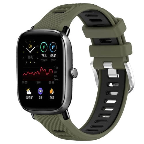 Correa de Reloj Amazfit GTS 4 Mini 22mm silicona textura cruzada con hebilla acero (Verde Militar + Negro)
