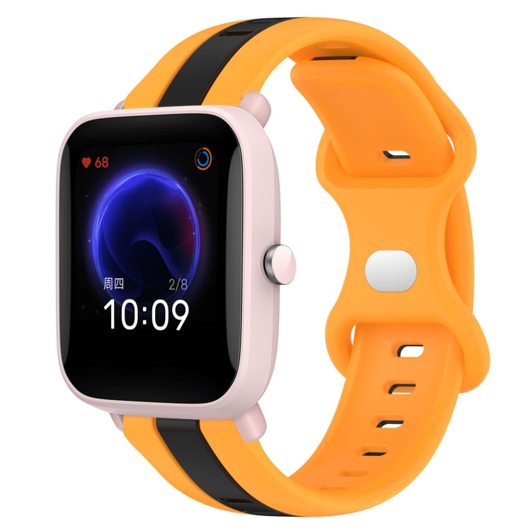 Correa de Reloj Amazfit Pop Pro 20mm silicona dos colores hebilla de mariposa (Negro + Amarillo)