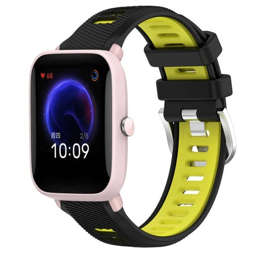 Correa de Reloj para Amazfit Pop Pro 22mm Textura Cruzada Silicona Dos Colores (Negro + Verde Lima)