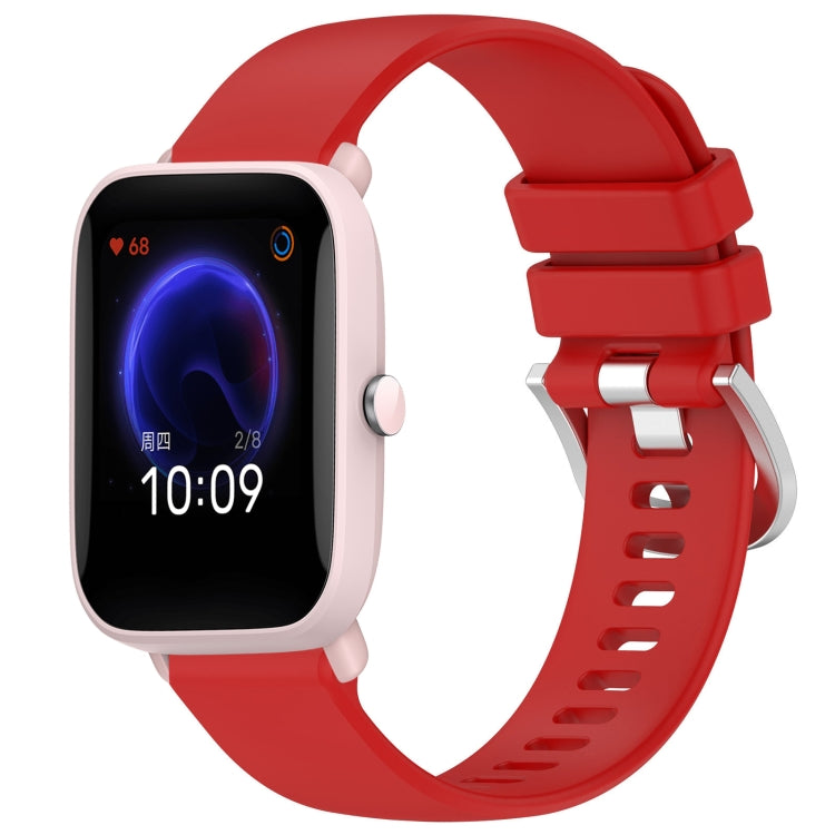 Correa de Reloj Silicona para Amazfit Pop Pro / Pop / Bip U con Hebilla Plateada Líquida Brillante de 20mm (Rojo)