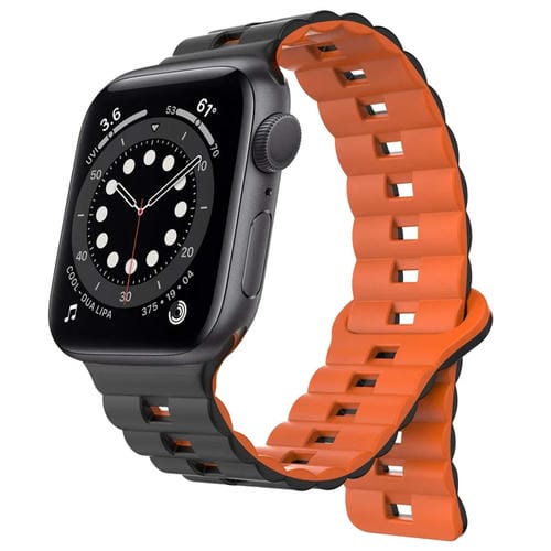 Correa de Silicona Magnética para Apple Watch 6 40mm con Hebilla Inversa (Negro + Naranja)