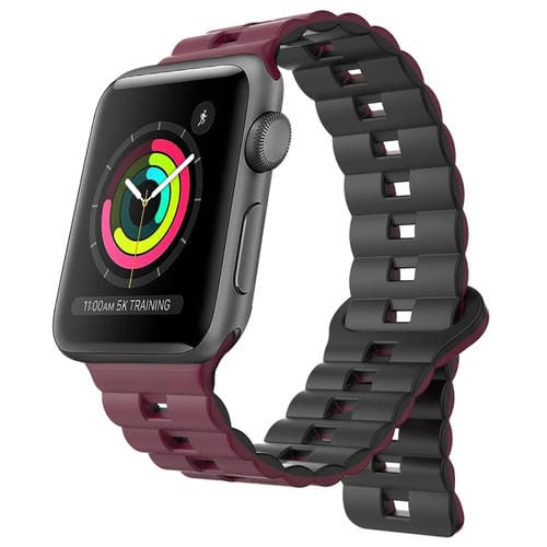 Correa para Apple Watch de Silicona Magnética 42mm (Rojo Vino + Negro)