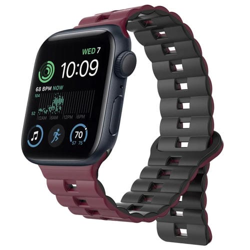 Correa para Apple Watch SE 2022 de Silicona Magnética Dos Colores con Hebilla Inversa 40mm (Rojo Vino + Negro)