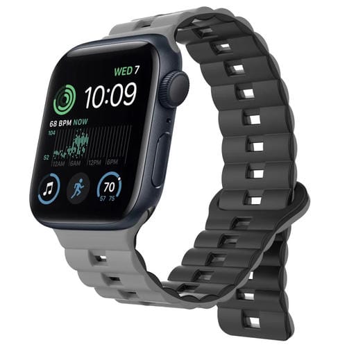 Correa silicona magnética para Apple Watch Se 2022 44mm con hebilla inversa (Gris + Negro)