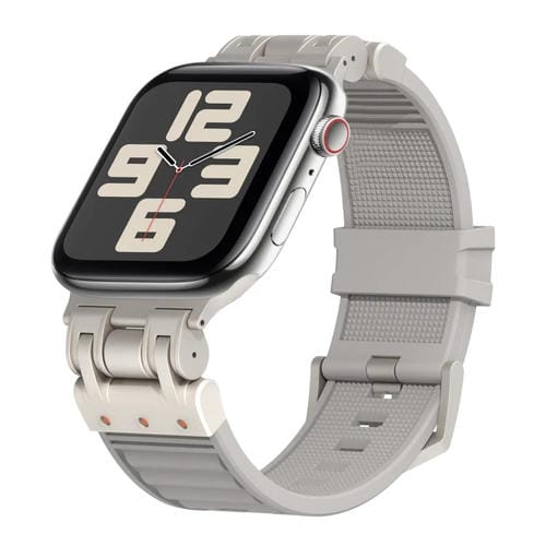 Correa de Silicona para Apple Watch Se 2023 44mm con Mecha de Metal a Cuadros (Gris Nube)