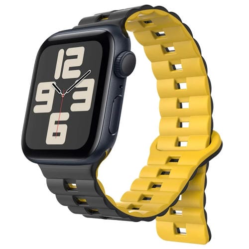 Correa para Apple Watch SE 2023 de Silicona Magnética Dos Colores con Hebilla Inversa 40mm (Negro + Amarillo)