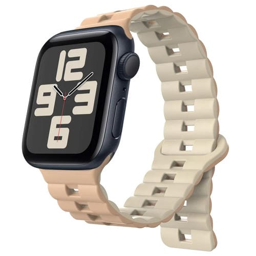 Correa para Apple Watch Se 2023 de Silicona Magnética Dos Colores con Hebilla Inversa 44mm (Blanco Leche + Blanco Antiguo)