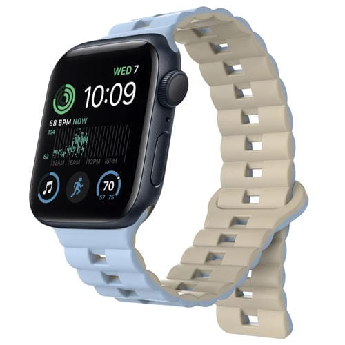 Correa para Apple Watch SE 44mm Silicona Magnética Dos Colores con Hebilla (Azul + Luz de Estrellas)