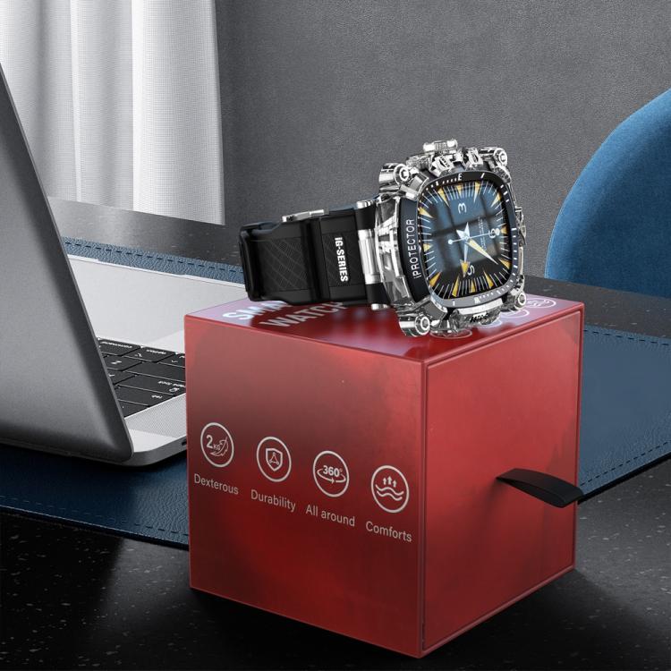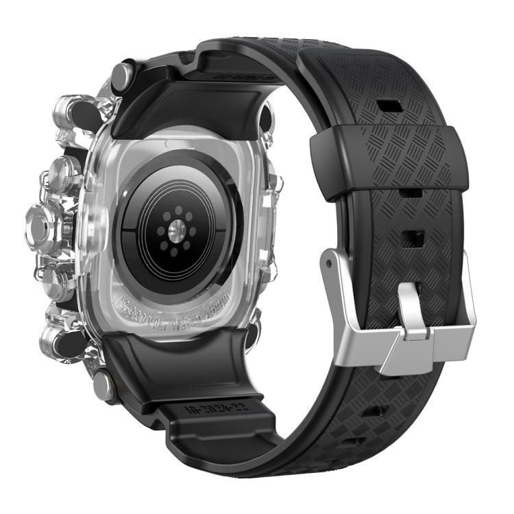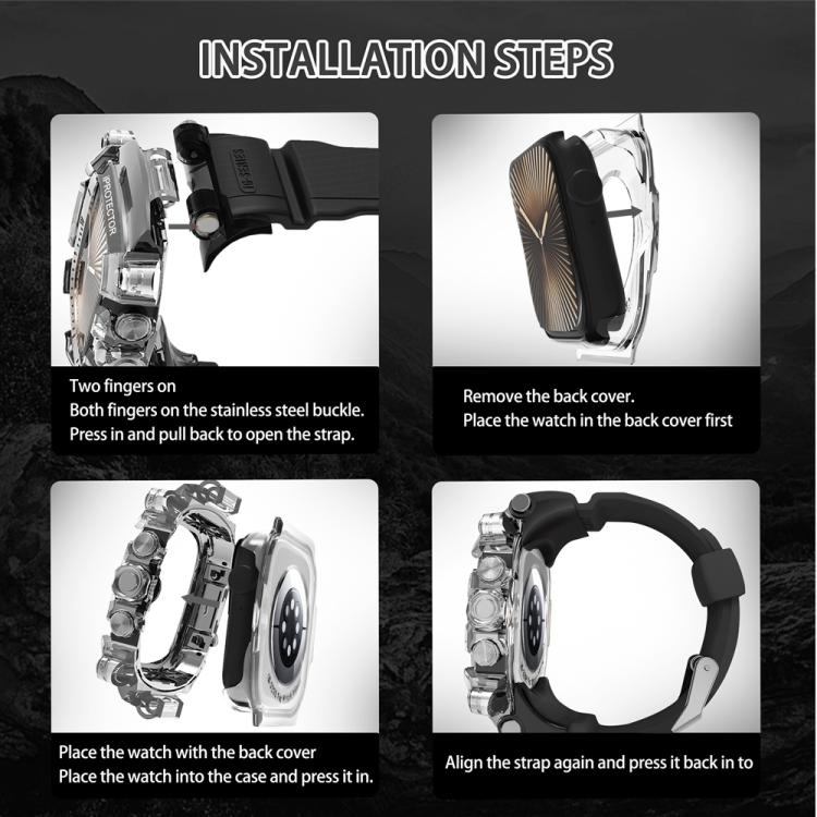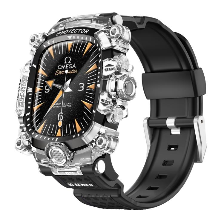 Para Apple Watch Series 10/11 de 46 mm, caja de metal, correa de silicona integrada (transparente + negra)