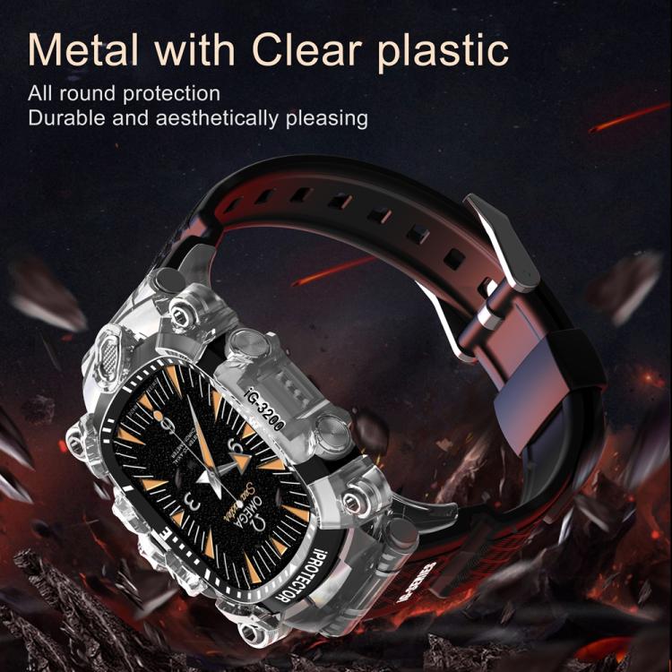 1. Material: Carcasa de PC y metal, y correa de silicona; ajuste perfecto.