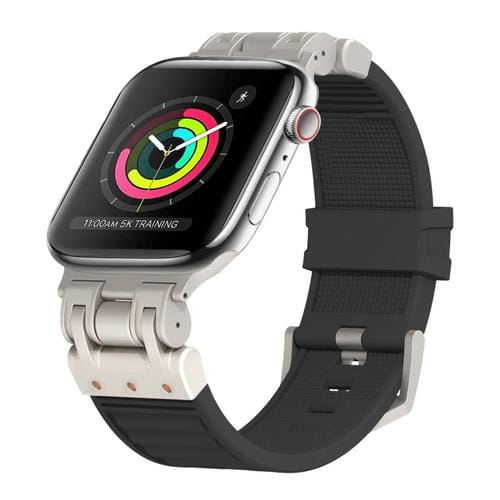 Correa de Silicona para Apple Watch Series 3 42mm a Cuadros Mecha de Metal (Negro)