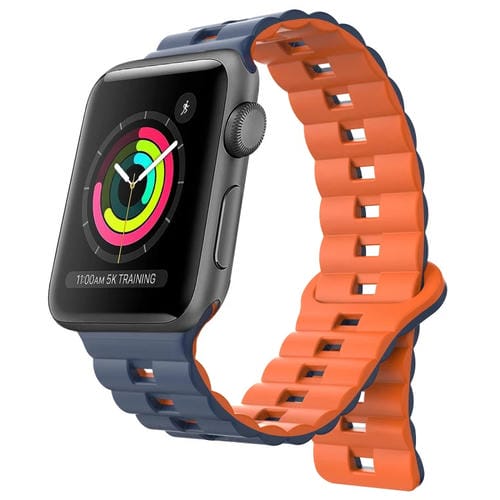 Correa de Silicona Magnética para Apple Watch Series 3 42mm (Azul Medianoche + Naranja)