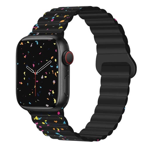 Correa de Silicona Magnética para Apple Watch Series 6 44mm (Negro) con Puntos de Colores
