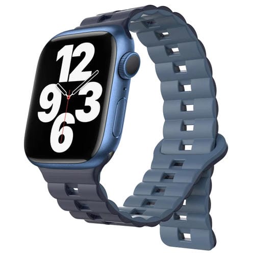 Correa para Apple Watch Series 7 de Silicona Magnética Dos Colores con Hebilla Inversa 41mm (Azul Oscuro + Azul Claro)