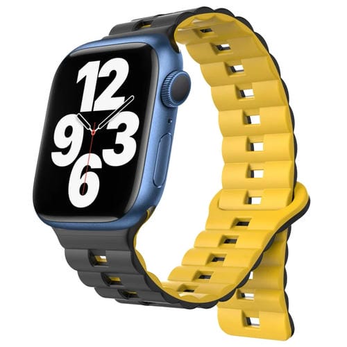 Correa de Silicona Magnética para Apple Watch Series 7 45mm (Negro + Amarillo)