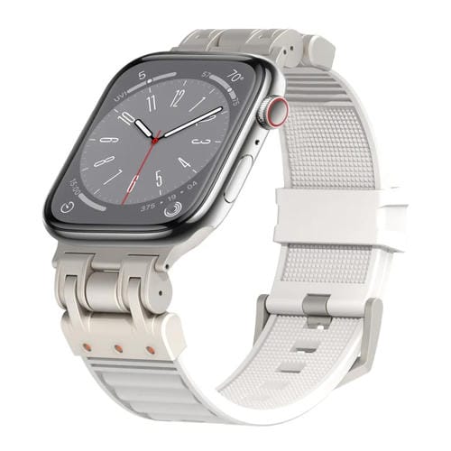 Correa de Silicona para Apple Watch Series 8 45mm a Cuadros Mecha de Metal (Blanco)
