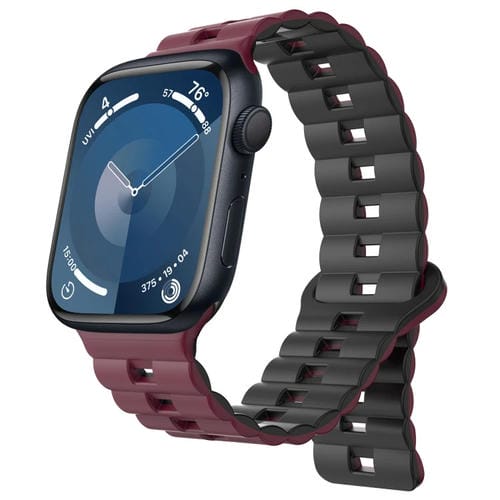 Correa de Silicona Magnética para Apple Watch Series 9 45mm (Rojo Vino + Negro)