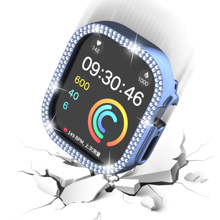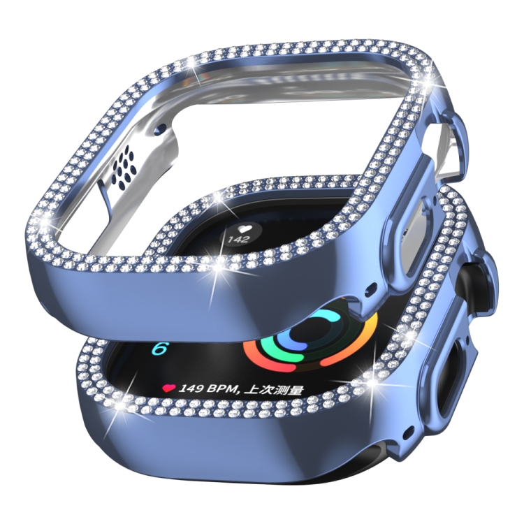 Caja de Reloj para Apple Watch Ultra 49mm de PC con Doble Fila Diamond Hollow (Azul)