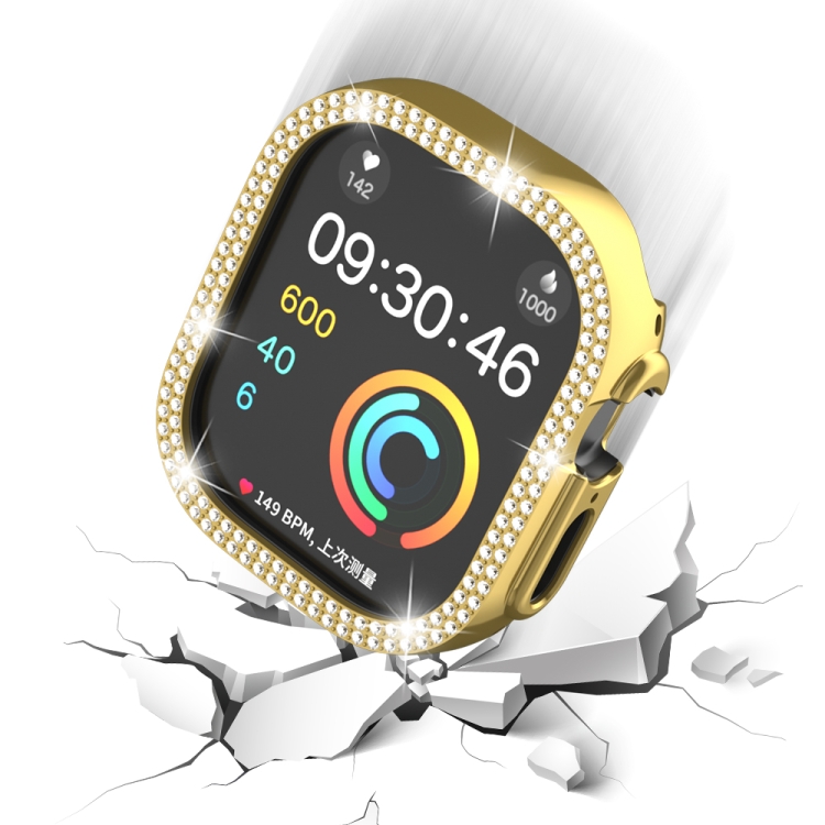 Caja de Reloj para Apple Watch Ultra 49mm PC con Doble Fila Diamond Hollow (Oro)
