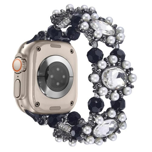 Correa para Apple Watch Ultra 49mm con Pulsera de Piedras Preciosas y Perlas (Negro)