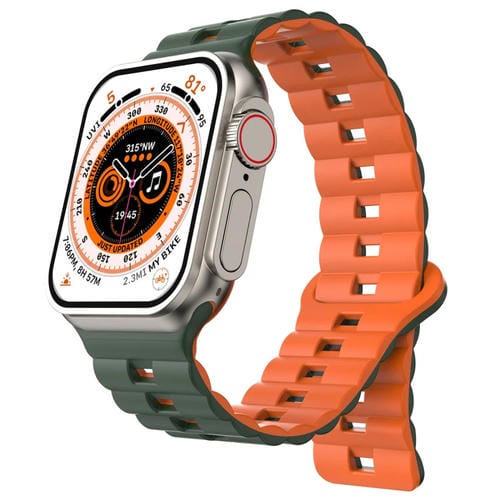 Correa de Silicona Magnética para Apple Watch Ultra 49mm con Hebilla Inversa (Verde Oliva + Naranja)
