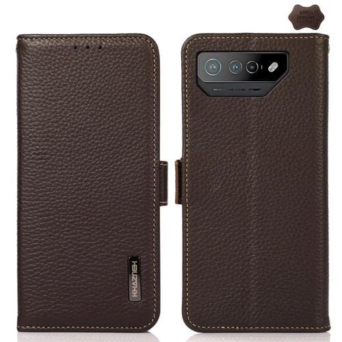 Funda para Asus Rog Phone 7 Khazneh Side-Magnetic Litchi Cuero Genuino Rfid (Marrón)
