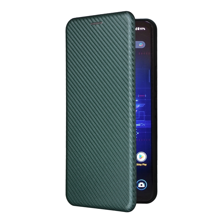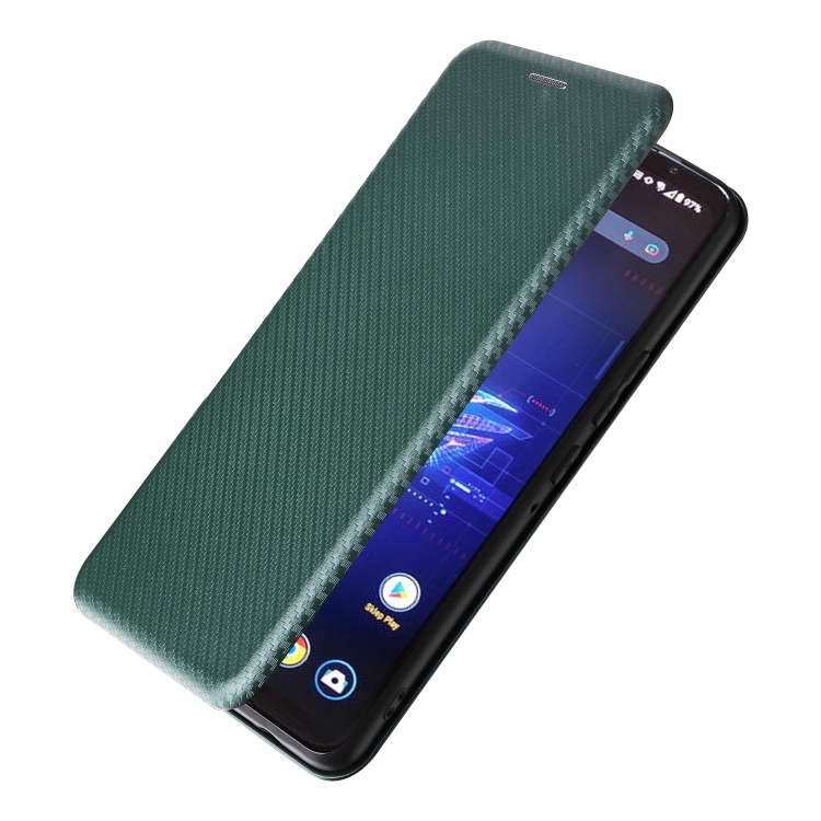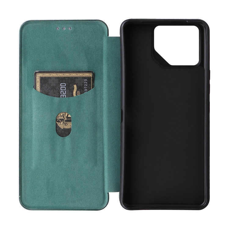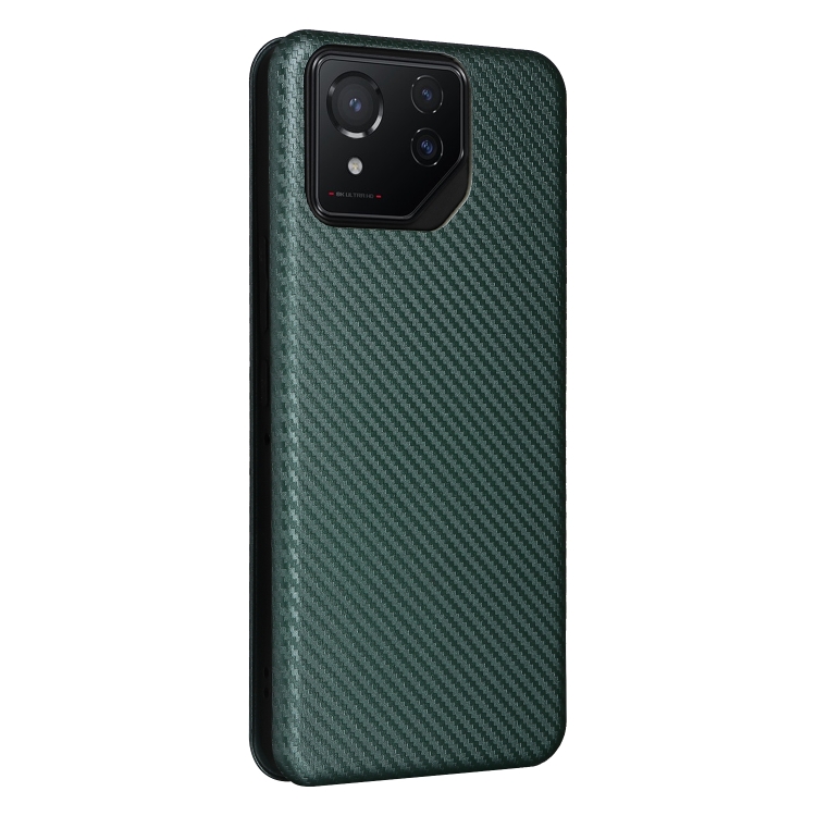 Funda de Cuero para Asus Rog Phone 8 con Tapa y Textura de Fibra de Carbono (Verde)