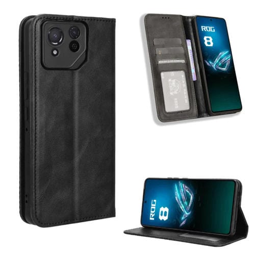Funda para Asus Rog Phone 8 Pro de Cuero con Textura Retro y Hebilla Magnética (Negro)