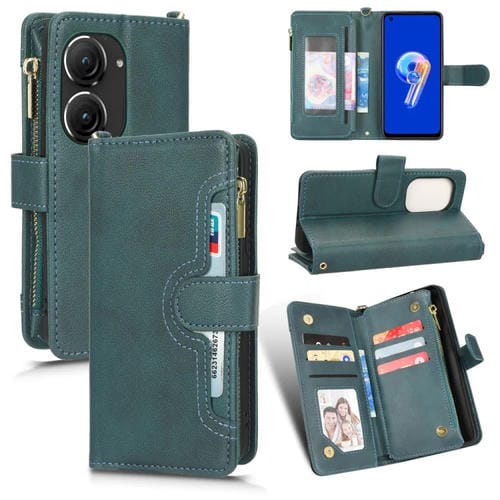Funda de Cuero con Cremallera para Asus Zenfone 10 y 9 Litchi Texture (Verde)