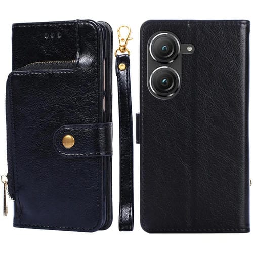 Funda de Cuero con Cremallera para Asus Zenfone 9 Teléfono (Negro)