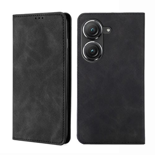 Funda para Asus Zenfone 9 Skin Feel Flip Horizontal Magnética de Cuero (Negro)