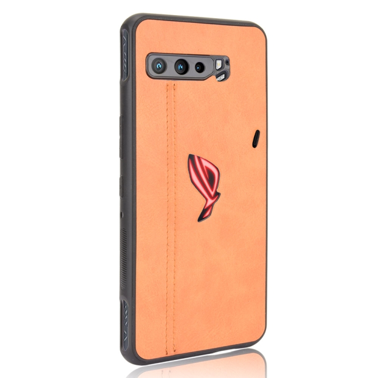 Funda para Asus Zs661Ks Rog Phone 3 Strix Costura a Prueba de Golpes Patrón de Vaca PC PU TPU (Naranja)