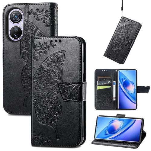 Funda de Cuero para BlackView A200 Pro Butterfly Love Flower en Relieve (Negro)