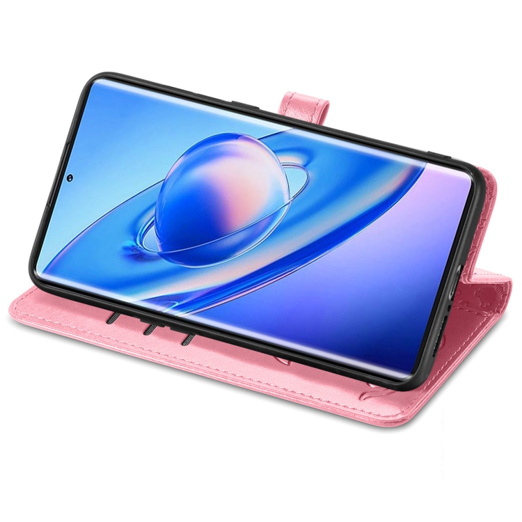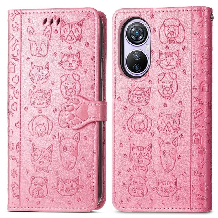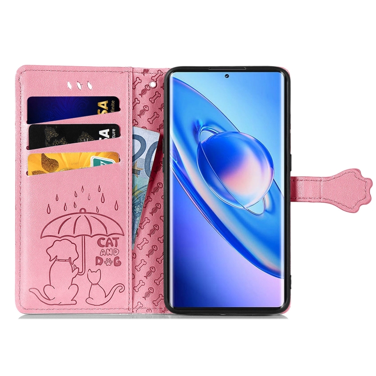 Funda de Cuero para BlackView A200 Pro con Relieve Perros y Gatos (Rosa)