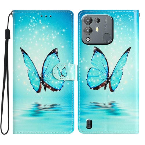 Funda de Cuero para BlackView A55 Pro con Dibujo Coloreado Mariposa Azul