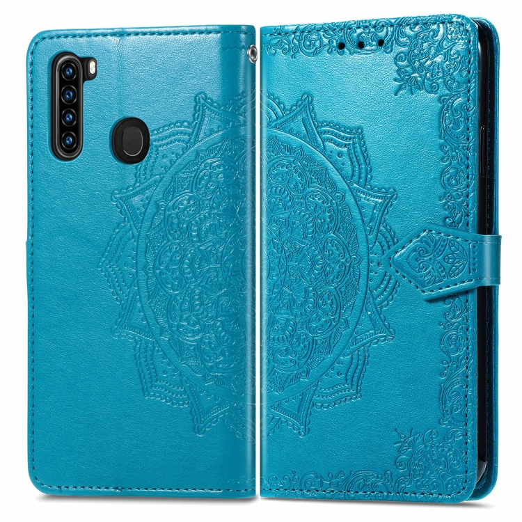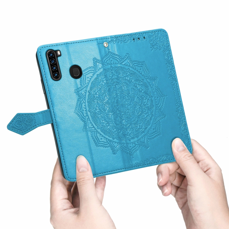 Funda de Cuero para BlackView A80 Pro Mandala Flower Horizontal Flip con Titular y 3 Tarjetas (Azul)