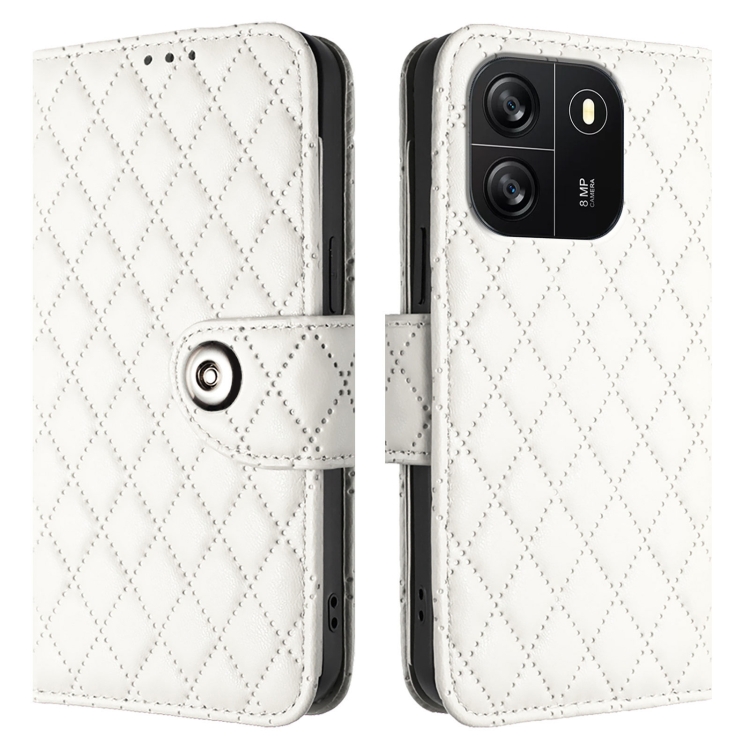 Funda de Cuero para BlackView Wave 6C con Tapa Textura Rombal y Cordón (Blanco)
