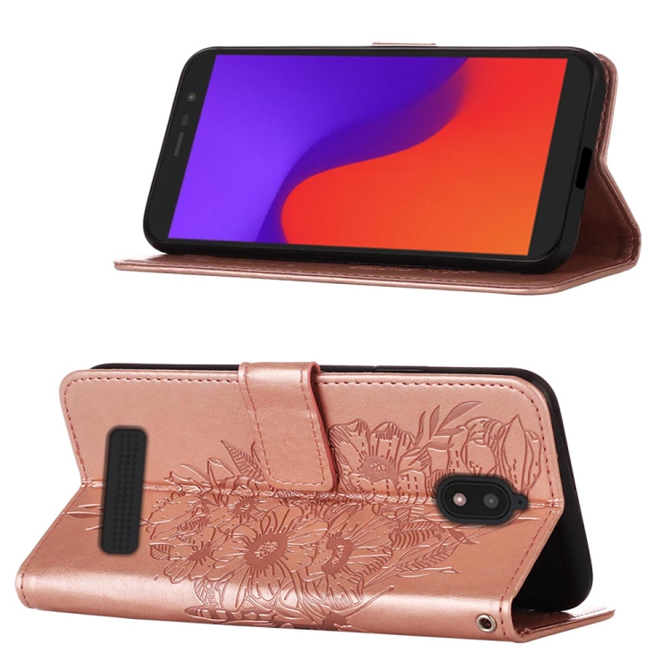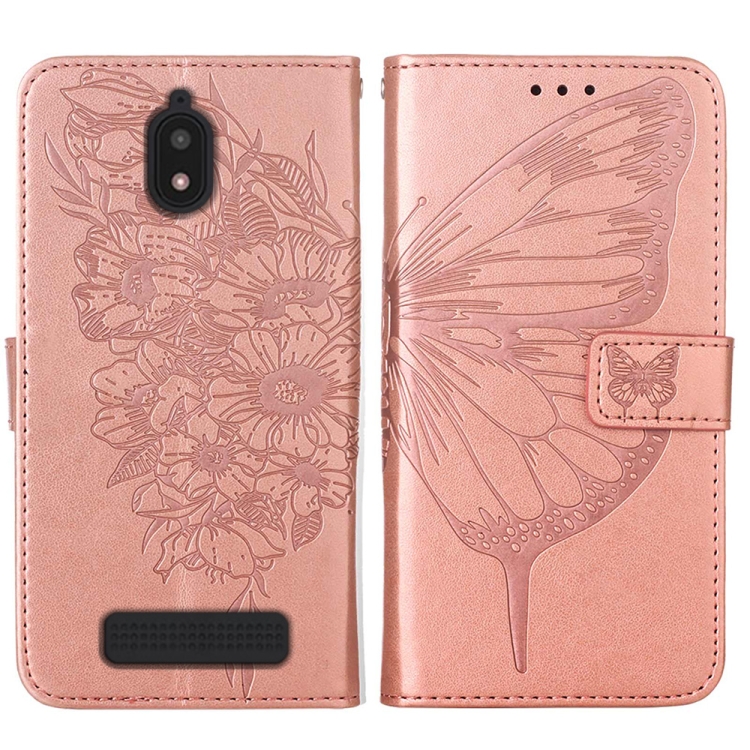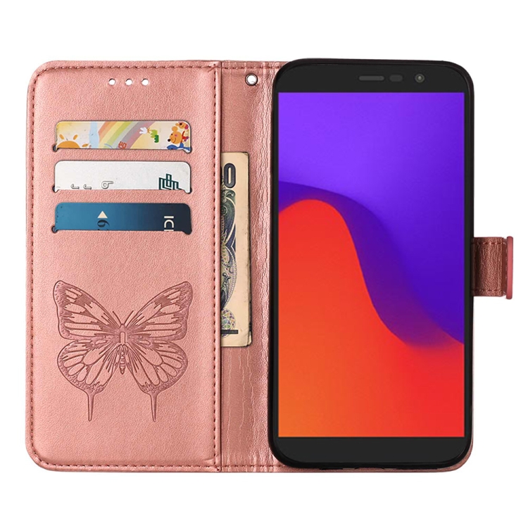 Funda de Cuero para BLU View 2 2022 / 2020 con Tapa de Mariposa en Relieve (Oro Rosa)