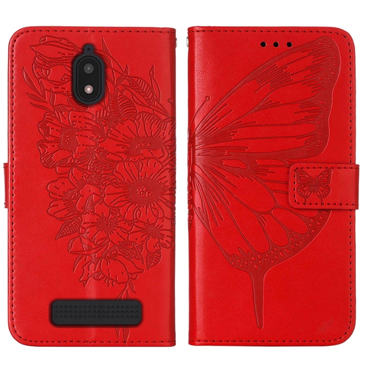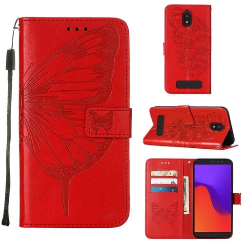 Funda de Cuero para BLU View 2 (2022/2020) con Tapa de Mariposa en Relieve (Rojo)