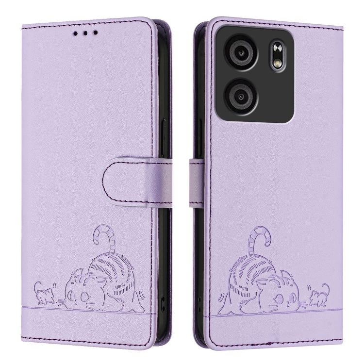 Estuche para teléfono Blu View 5 Cat Rat cuero RFID en relieve con cordón (Púrpura)