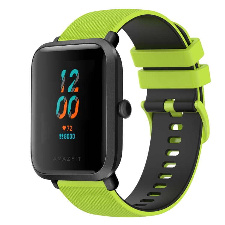 Para Correa de Reloj de Silicona de Dos Colores a Cuadros Amazfit Bip de 20mm (Verde Lima + Negro)
