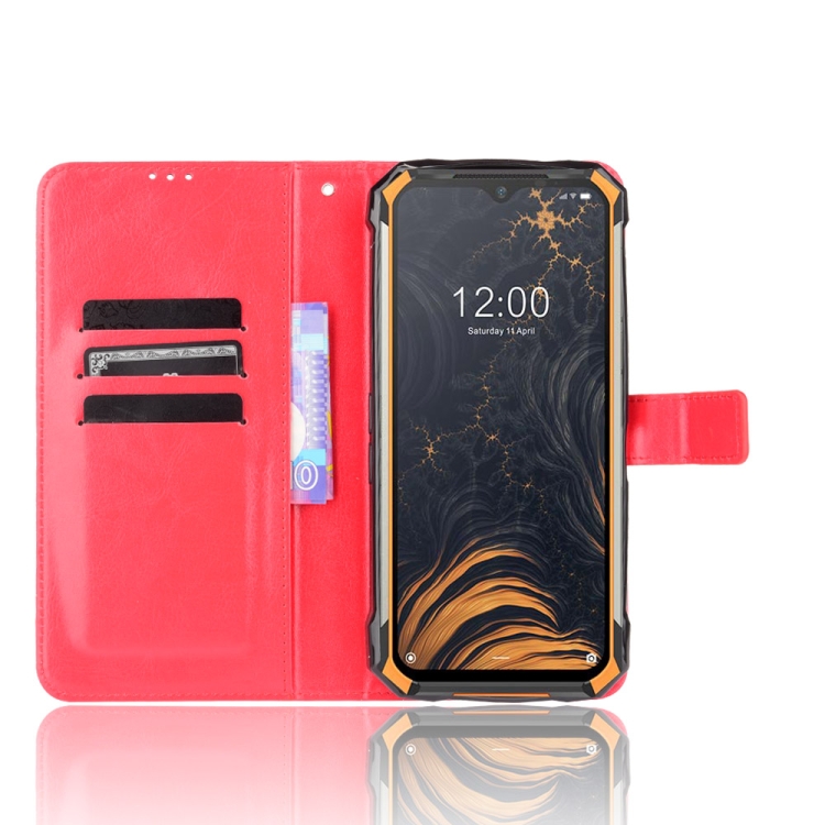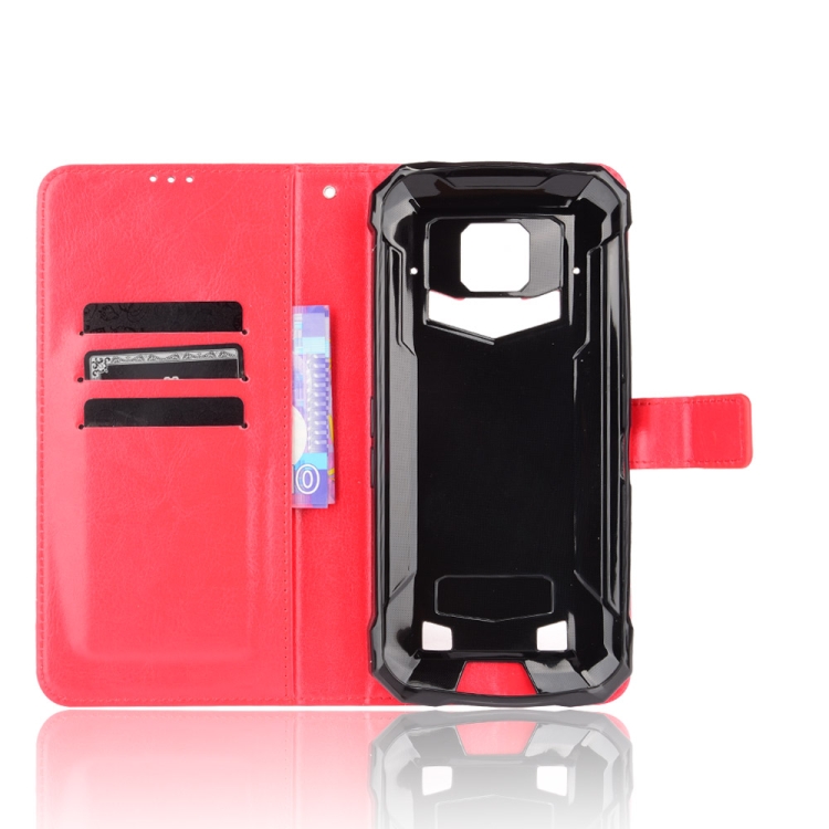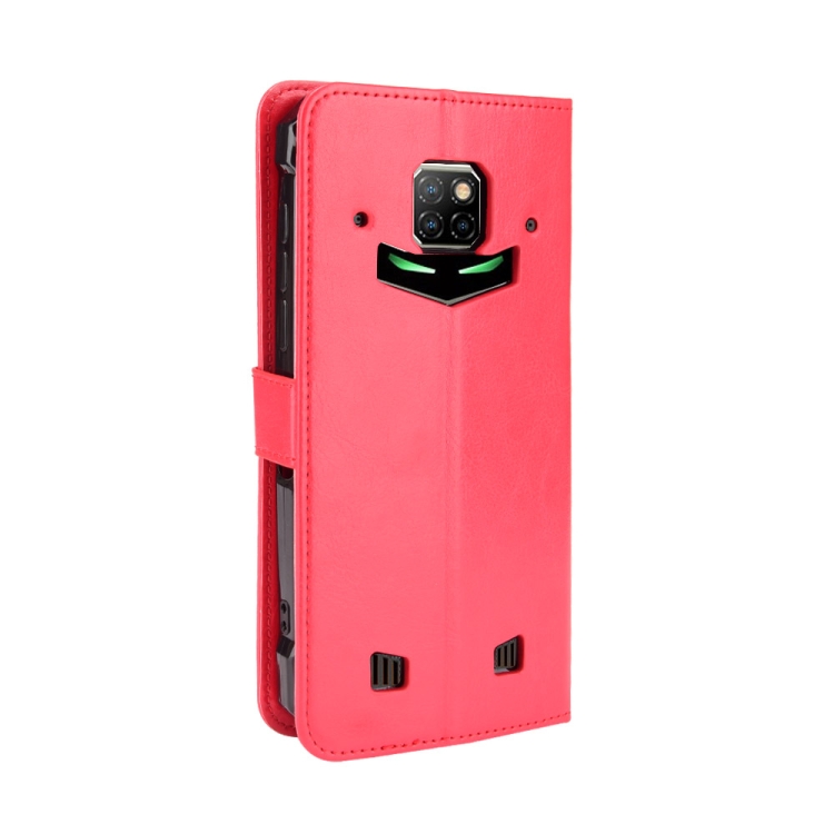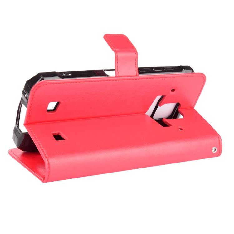 Funda de Cuero Doogee S88 Plus S88 Pro Crazy Horse Textura Horizontal con Soporte Ranuras y Cordón (Rojo)