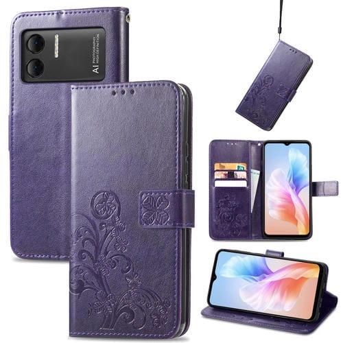 Estuche para Teléfono Doogee X98 Pro / X98 Cuero con Hebilla en Relieve y Cierre de Cuatro Hojas (Púrpura)