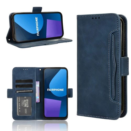 Funda de Cuero para Fairphone 5 Skin Feel Becerro con Ranuras para Tarjetas (Azul)