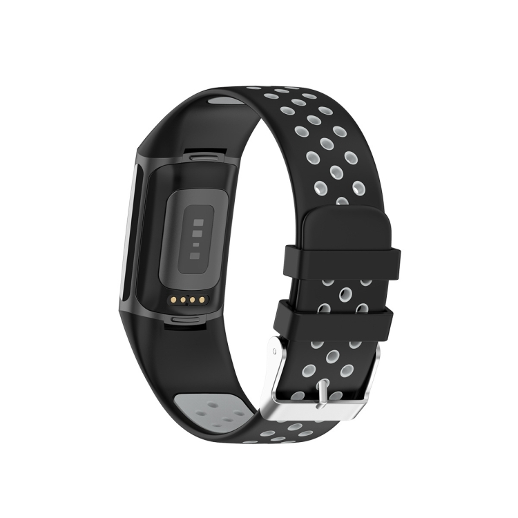 Correa para Fitbit Carga 5 doble color con hebilla metálica y agujeros de silicona (Gris Negro)