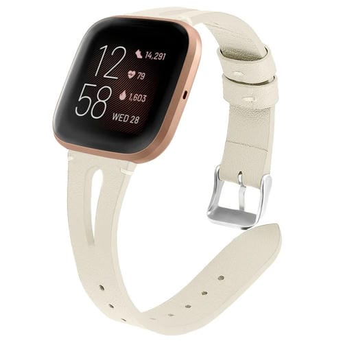 For Fitbit VERSA 2 Leather Half Opening Watch Band (Creamy White)